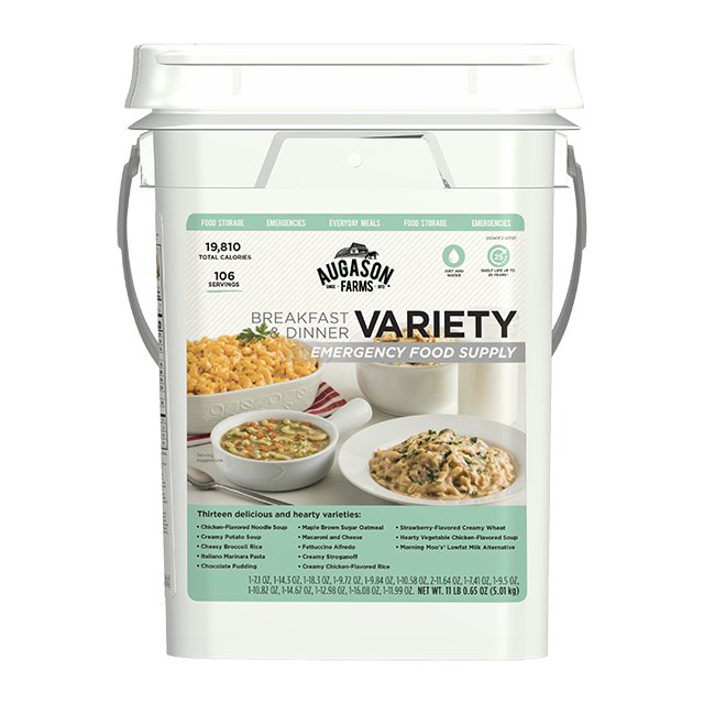 Tasty meals for times of uncertainty, busy weekdays, or outdoor adventures, our Breakfast and Dinner Variety Pail is an emergency food supply that provides plenty of healthy, ready-in-minutes meal options. We’ve included 13 breakfast and dinner varieties, including delicious dry soup mixes, popular entrée favorites, creamy wheat cereal, mouthwatering chocolate pudding, and Morning Moo’s® Lowfat Milk Alternative, a refreshing powdered milk drink.
