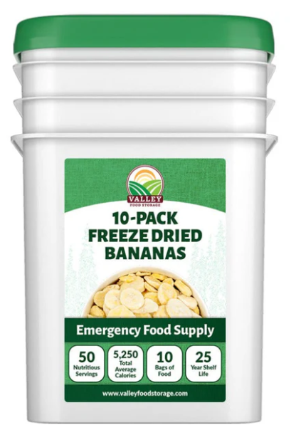 Valley Food Storage’s Freeze Dried Bananas are made with simple ingredients featuring the delicious flavor of fresh bananas. Packed full of essential vitamins and minerals including Vitamin A, Vitamin C, Potassium, and Fiber. Our bananas will keep your family’s health and wellness at the forefront while protecting them with long term food storage for up to 25 years! Each pouch of freeze dried bananas contain 5 servings.