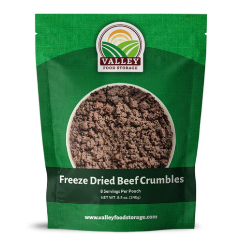 Valley Food Storage’s Freeze Dried Beef has a shelf life of 25 years and contains the protein that’s vital to the human body making it a key addition to your food storage.