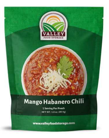 Valley Food Storage Mango Habanero Chili features a sweet and savory entree that will bring the heat to your kitchen making it perfect for a quick and convenient lunch or dinner for the whole family. Each pouch of mango habanero chili contains 5 servings.