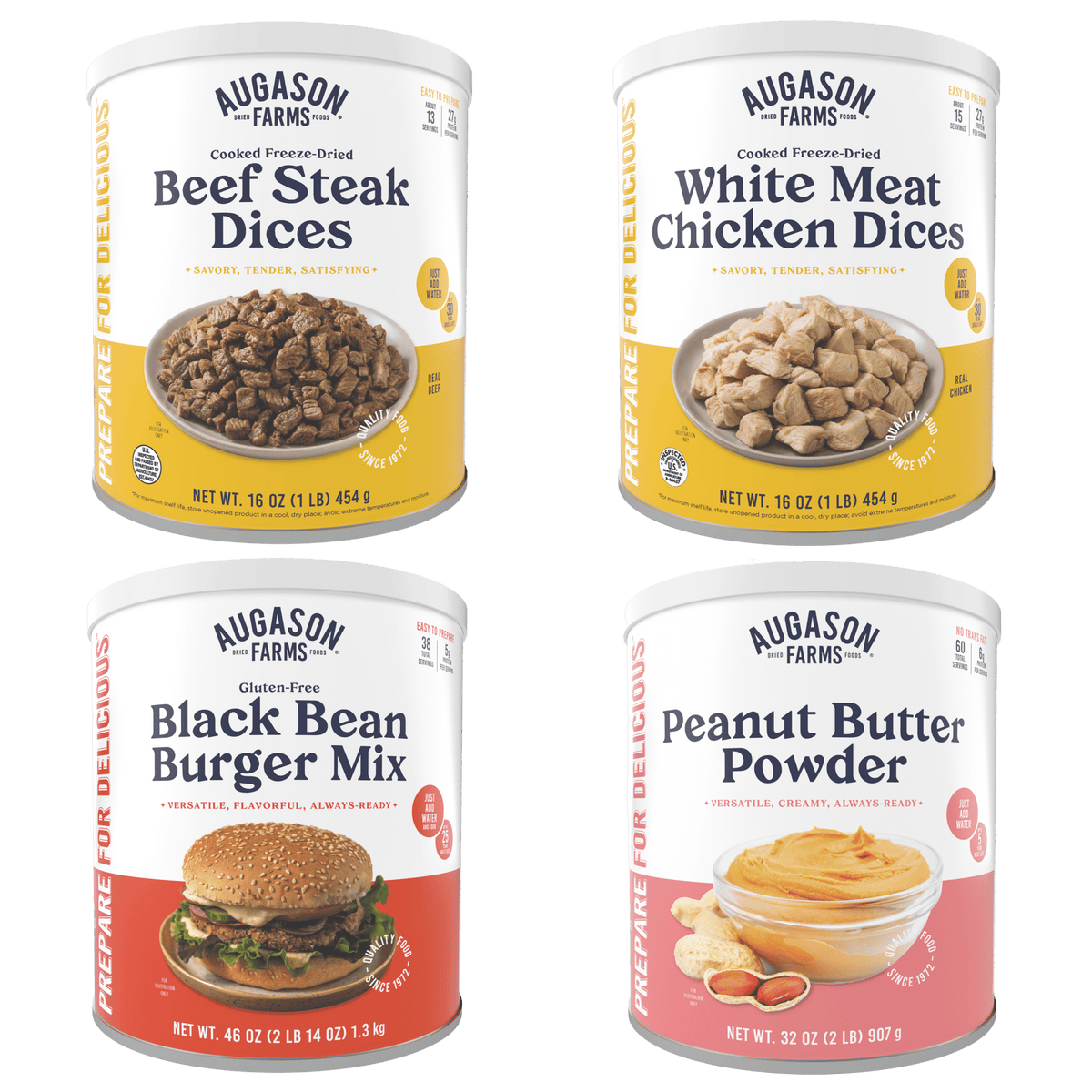 Ensure you have the protein you need when it matters most, at the best value. This bundle includes real beef, chicken, black bean burger mix, and peanut butter powder—each offering a quick and convenient source of protein for both everyday meals and emergency situations. With these essentials, you’ll have delicious, protein-packed options ready to fuel your body, no matter the circumstance.