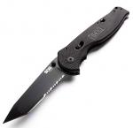 Material: 440 Stainless Steel Blade Partially Serrated Blade, Glass Breaker Stub Seatbelt Cutter Seatbelt Cutter Liner Locking System Overall Length 9", Blade Length 3.5"