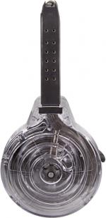 Korean .40 S&W 50RD Glock Drum with Clear Back Made of durable corrosion resistant black polymer. Loads quick and easy with finger groove ratchet tab. Specifications Capacity: 50rd Finish/Color...