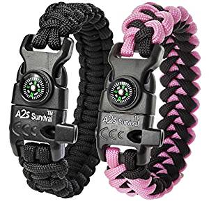 LIGHTWEIGHT & COMFORTABLE DESIGN: Make the A2S Paracord Bracelet an indispensable survival accessory for any camping, fishing, hiking or hunting trip. MAGNESIA ROD (Flint Fire Starter) gives you a secure solution when lighting a fire is a matter of an emergency. Rub the rod to the to get spark and fire under any weather conditions. Please check the fire starter instructions image