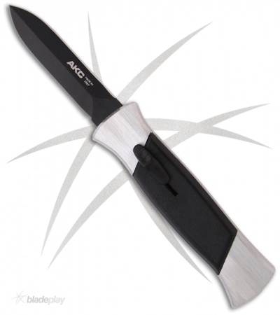 AKC 777 Blackfinger Brushed Aluminum OTF Automatic Knife - Dagger Black Plain