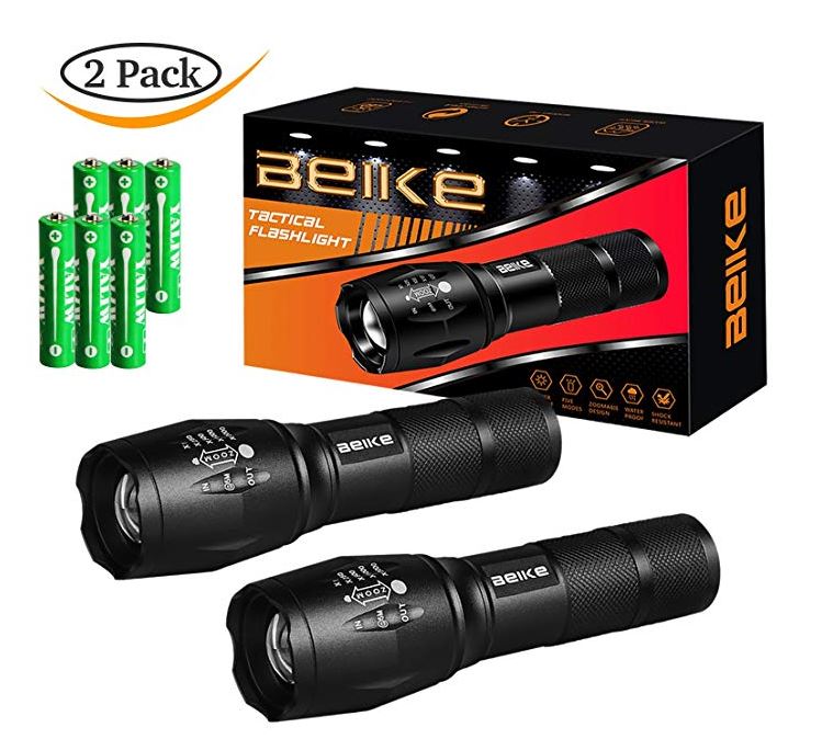 Beike 2 Pack 1000 lumens Tactical Flashlights, Super Bright Handheld Outdoor CREE LED Torch Flashlight with Adjustable Focus 5 Light Modes for Camping Hiking Emergency(AAA Batteries Included)