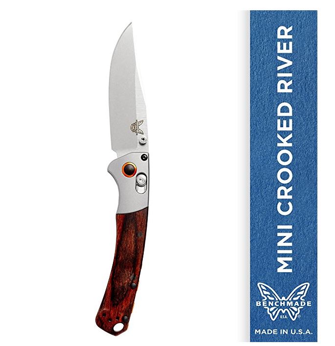 This fits your . Enter your model number to make sure this fits. P.when("ReplacementPartsBulletLoader").execute(function(module){ module.initializeDPX(); }) COMFORTABLE: The 15085-2's smaller size is comfortable to hold and use. The reversible pocket clip offers ultimate accessibility. HIGH-QUALITY: The CPM-S30V stainless steel blade is well-balanced, offering superb edge qualities and rust resistance. The stabilized wood handle is more resistant to environmental hardships than natural wood. WELL-DESIGNED: Benchmade's AXIS lock is exceptionally strong and fully ambidextrous. The Mini Crooked River 15085-2 is a manual knife that can be opened and closed single-handedly. MADE FOR HUNTING: The Mini Crooked River 15085-2's classic, clip-point blade style offers precision tip control and good versatility, making it ideal for hunting. GUARANTEED FOR LIFE: Benchmade's limited Lifetime Warranty and LifeSharp Service keep your knife in the best condition. If your knife needs repair or sharpening, Benchmade will take care of it. Available for knives purchased from an authorized dealer.