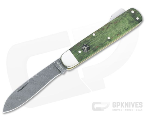 Boker Solingen Hunter's Knife Mono Damascus Green Curly Birch Lock Back Folder 118030DAM