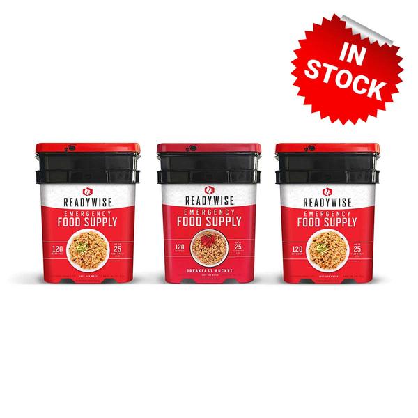 Ships Within 1-2 Weeks While Supplies Last **Ships Only Within USA** Features: 120 Breakfast Servings 240 Entrée Servings Each Freeze-Dried Food Pouch Is Safely Stored in Metallyte™ Pouches. Each pouch has 4 servings. Contains Handles for Easy Transport 25 Year Shelf Life Made in the USA Top Notch Flavor & Nutrition That's Really Easy to Make ReadyWise Emergency Food Supply Buckets are perfect for any unplanned emergency.