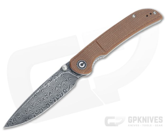Think of the CIVIVI Imperium as an evolution of the popular Elementum with sports car style and an aerodynamic front flipper design. Great for dress carry while being utilitarian for EDC the Imperium is a winning design with plenty to offer. This version comes with a black hand rubbed Damascus blade and brown Micarta handles.