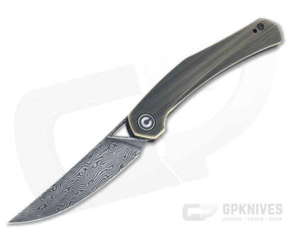 CIVIVI Lazar Isham Black Hand Rubbed Damascus Brass Front Flipper C20013-DS2