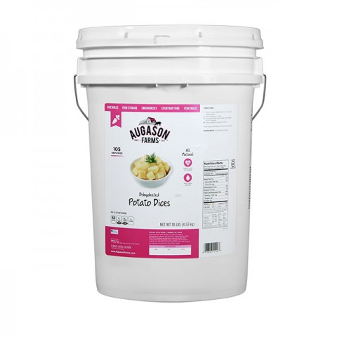 Stock your food storage in bulk with the Augason Farms dehydrated potato dices 10lb pail. Also, view dehydrated potato dices nutrition facts here.
