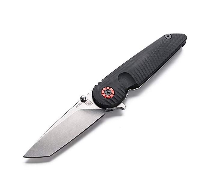 This Falco model sports a black G-10 handle and a stonewash finished M390 steel blade with a tritium flipper insert.