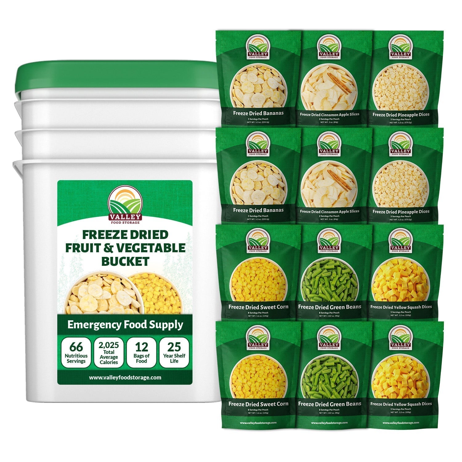 These buckets contain a selection of our most popular freeze dried fruits & vegetables with a guaranteed 25 Year Shelf Life.