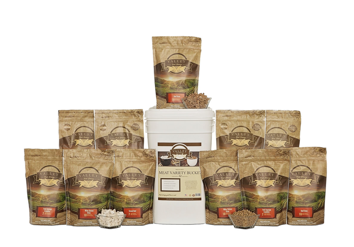 25 year all natural freeze dried meats! Chicken, beef and pork all in one easy bucket. Delicious and full of nutrition, see more here!