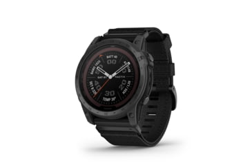 Product Info for Garmin Tactix 7 Pro Edition Solar-Powered Tactical GPS Watches Tactix 7 Pro Edition is the multisport GPS smartwatch featuring a Power Sapphire solar charging lens, traditional button controls and touchscreen display. Its specialized with tactical functionality and a dimmable white or green LED flashlight. Specifications for Garmin Tactix 7 Pro Edition Solar-Powered Tactical GPS Watches: Manufacturer: Garmin Application: Casual Gender: Unisex Band/Strap Color: Black Color: Black Case Finish: Fiber-Reinforced Polymer Bezel Finish: Titanium Band/Strap Material: Nylon/Silicone Water Resistance Level: Water Resistant Water Resistant Mark: 10 atm Weight: 89 g Features of Garmin Tactix 7 Pro Edition Solar-Powered Tactical GPS Watches Rugged, military-inspired design features an always-on 1.4in solar powered display, black DLC-coated steel bezel and black PVD-coated steel rear cover and new LED flashlight Sapphire lens with traditional button controls and a touchscreen display to access selections Specialized tactical features include Jumpmaster mode, waypoint projection, stealth mode, dual-position format, preloaded tactical activity and a kill switch to erase user data and location Navigate the outdoors with preloaded TopoActive and ski maps, navigation sensors, and multi-GNSS and multi-band support, providing the highest level of positional accuracy from Garmin Training and performance features with more than 30 built-in sports apps, endurance and stamina, and performance metrics When paired with your compatible smartphone, enjoy comprehensive health and wellness monitoring plus all-day functionality with smart notifications, Garmin Pay contactless payments (with a supported country and payment network) and up to 37 days of battery life when solar charging (assumes all-day wear with 3 hours per day outside in 50,000 lux conditions) in smartwatch mode Package Contents: Garmin Tactix 7 Pro Edition Solar-Powered Tactical GPS Watches Charging/Data Cable Documentation Black Silicone Band