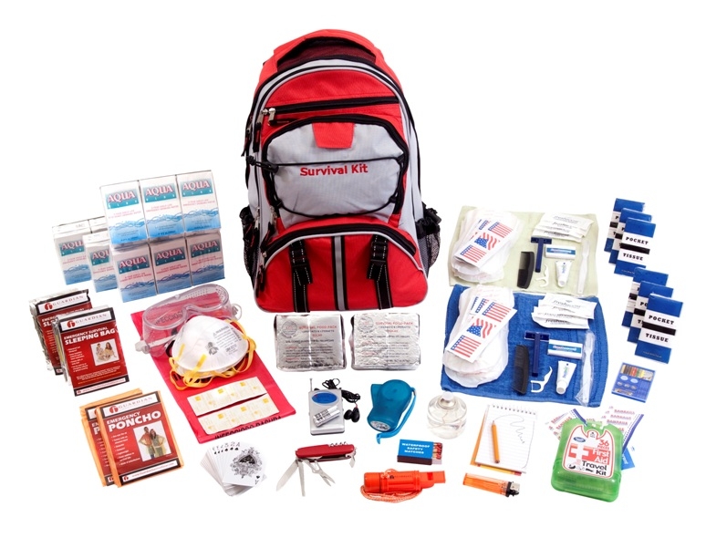 (All of the items below are packed securely in a Deluxe Hikers Backpack which has extra space available for your personal items) The kit includes the following: Food and Water: 12 - Boxes of Aqua Blox Water Boxes - twice the amount of water as leading suppliers and has a