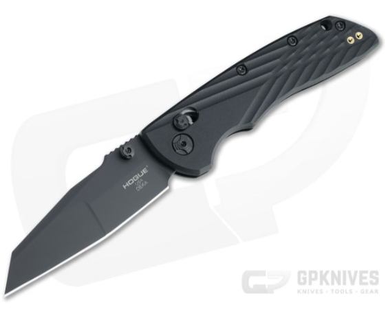 Celebrating a decade of knife manufacturing Hogue has teamed up with custom knife maker Allen Elishewitz to deliver the Deka folder. This fantastic everyday carry design come with an Ambidextrous ABLE Lock mechanism for solid reliability in a lightweight package. The polymer handled variants sacrifice a bit of rigidity for reduced weight and corrosion resistance and utilize the amazing CPM-Magnacut blade steel for balanced high-end performance. This version has a black Cerakote coated modified Wharncliffe blade and black polymer handle scales.