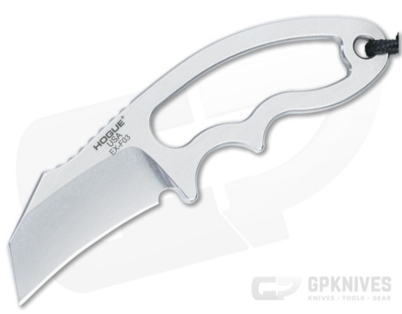 This Hogue EX-F03 fixed knife comes with a stonewashed Hawkbill blade and skeletonized steel handle.