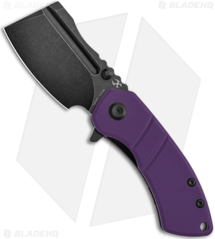 Overall Length: 6.25" Blade Length: 2.50" Cutting Edge: 2.25" Blade Width: 1.38" Blade Thickness: 0.12" Blade Material: 154CM Blade Style: Cleaver Blade Grind: Flat Finish: Black Edge Type: Plain Handle Length: 3.88" Handle Width: 1.00" Handle Thickness: 0.51" Handle Material: G-10 Color: Purple Frame/Liner: Steel Weight: 4.08 oz. User: Right Hand Pocket Clip: Tip-Up Knife Type: Manual Opener: Flipper, Thumb Stud Lock Type: Liner Lock Brand: Kansept Model: Korvid M Model Number: T2030A3 Designer: Justin Koch Country of Origin: China Best Use: Everyday Carry Product Type: Knife