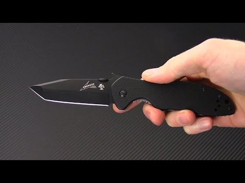 Buy Kershaw 6034TBLK model CQC-7K from gpknives.com. Tanto blade knife designed by Emerson and opens by thumb disk or wave.