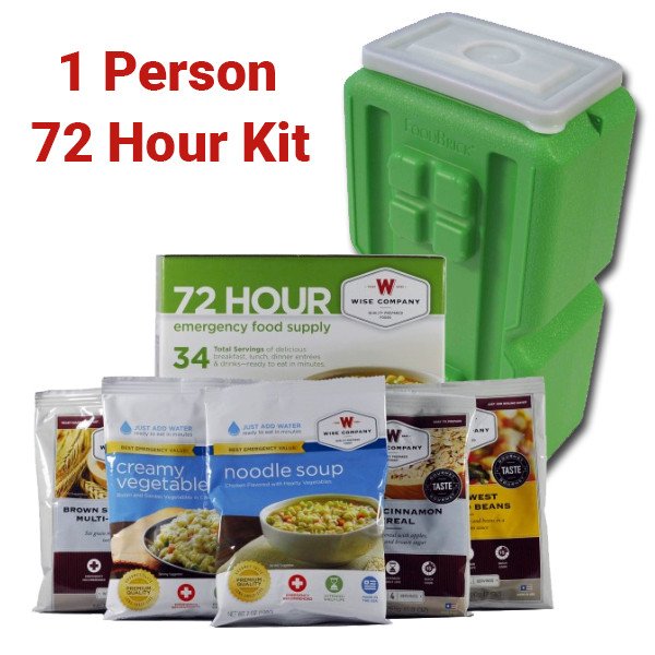 Includes 1 FoodBrick Emergency Food Storage Container & 72 Hour Wise Foods Emergency Food Supply of Freeze Dried Food. Great Survival Products for Bugging Out!