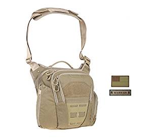 Maxpedition VELDSPAR Crossbody Shoulder Bag (TAN) + FREE Warrior & Flag Patch