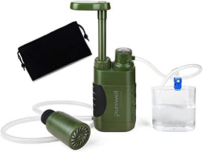 Purewell Water Purifier Pump with Replaceable Carbon 0.01 Micron Water Filter, 4 Filter Stages, Portable Outdoor Emergency and Survival Gear - Camping, Hiking, Backpacking