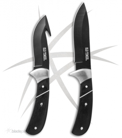 Description Description This Schrade Old Timer hunting pack is the ultimate knife combo for any outdoors enthusiast! It comes with two high quality fixed blade knives featuring wood handles and 3Cr13 stainless steel blades. They come in a drop point and gut hook blade style and have a glossy black finish. The full tang handles have black wood scales and stainless steel bolsters. Both knives include a black nylon belt sheath for easy everyday carry. The Schrade Old Timer line offers quality EDC knives at affordable prices.