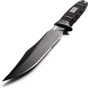 7 INCH AUS-8 STEEL PARTIALLY SERRATED FIXED BLADE: The SEAL Team Elite outdoor knife is an ultra-sharp combat knife & belt sheath hunting knife; measures 12.3 inches overall length
