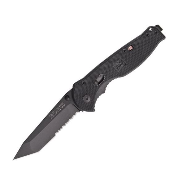 SOG Flash II Assisted Folding Knife TFSAT98-CP - Black TiNi 3.5" Tanto Partially Serrated Blade, GRN Handle