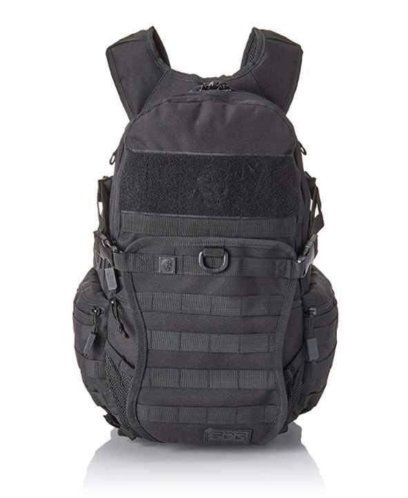 Large-sized backpack great for daily commute, guard duty, travel, and hiking; padded shoulder straps combined with waist belt comfortably carries heavy loads