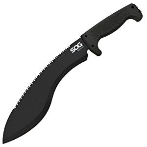 SOG SOGfari Kukri Machete MC11-N - Hardcased Black 12" Blade w/ Saw Back, Rubber Handle, Nylon Sheath