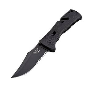 SOG Specialty Knives & Tools TF1-CP Trident Knife with Partially Serrated Assisted Folding 3.75-Inch Steel Blade and GRN Handle, Black TiNi Finish