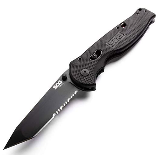 SOG ASSISTED TECH (S.A.T.) AND PISTON LOCK: One of the fastest EDC opening knife systems ever; Tanto tip pocket knife tool opens single-handed, and Piston Lock secures the blade