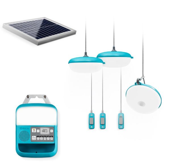 The SolarHome 620 brings modern lighting, energy, and entertainment to transform any structure into an off-grid home. The easy-to-install solar panel captures daily sun to charge up a central control box which powers 3 hanging lights, USB charge-out, and an MP3/FM radio system. BioLite's first-crossover product, the SolarHome 620 is currently in use in over 40,000 homes across western Kenya. Perfect for vans, sheds, or the next power outage, the system comes packed in a kit the size of a shoebox.