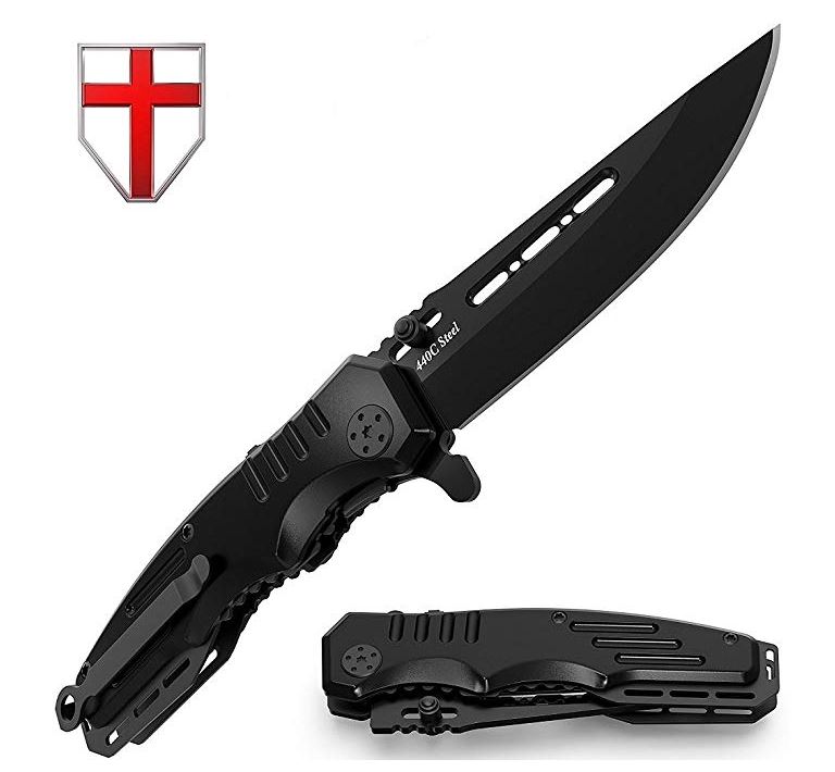 Spring Assisted Knife - Pocket Folding Edc Knife - Military Style - Boy Scouts Knife - Tactical Knife - Good Survival Knife for Camping and Outdoor Activities (Medium, Black)