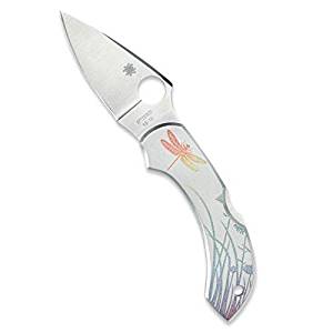 Spyderco Dragonfly Tattoo Folding Knife - Stainless Steel Handle with PlainEdge, Full-Flat Grind, VG-10 Steel Blade and Back Lock - C28PT