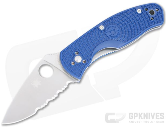 A mid-size model in the Spyderco Value line of folders, the Persistence is a budget friendly 'little big knife' with a statute-friendly sub-3 inch blade. The lightweight FRN version increases traction with molded bidirectional texturing while reducing cost and cutting weight by nearly 10% over the G10 version. The lightweight Persistence retains the same functional, ergonomic design and reliable liner lock construction. This upgraded version comes with blue FRN scales and a satin finished, partially serrated CPM-S35VN blade.