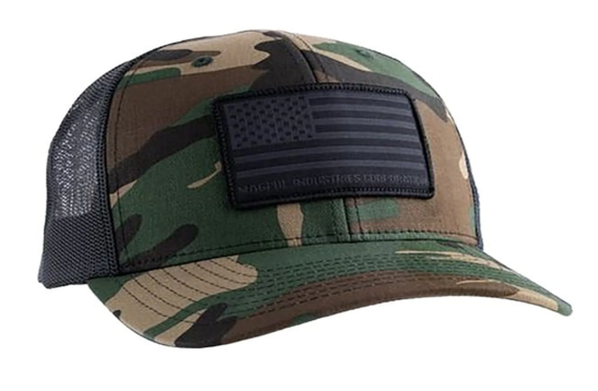 This hat is a structured, six-panel trucker-style hat, that features a woven Magpul American Flag patch located front and center of the hat. It’s got a mesh back and a mid-crown design, so the brim rests just above the brow and stays comfortable all day. There’s no button on the top of the hat, making it great for use with over-the-head hearing protection.