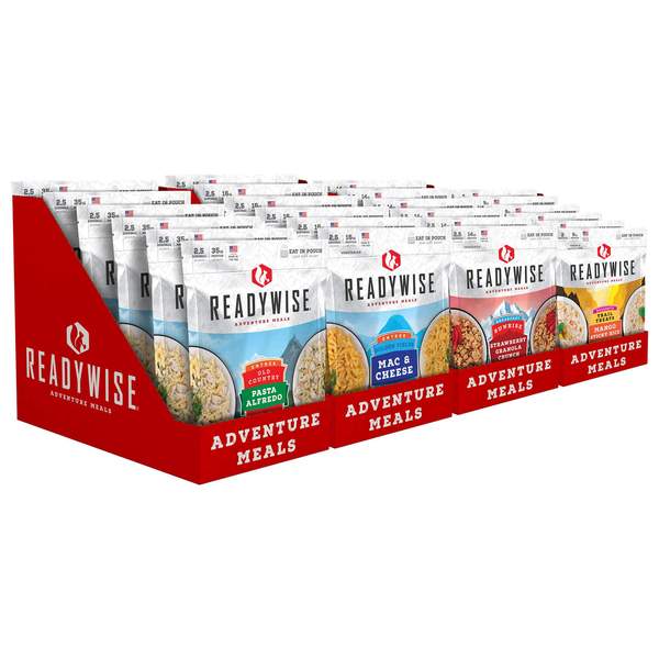 Our Survival Variety Bundle contains 4 cases (6 packs) of our most popular Adventure Meals-breakfast, lunch, dinner, and snacks all included. While Adventure Meals are perfect for day-to-day outdoor activities, they also make for great emergency preparedness options. All you have to do is add water to the eat-in pouch-