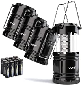Vont 4 Pack LED Camping Lantern, LED Lanterns, Suitable Survival Kits for Hurricane, Emergency Light for Storm, Outages, Outdoor Portable Lanterns, Black, Collapsible, (Batteries Included)