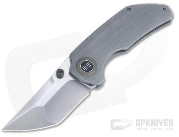 From the mind of Matthew Christensen of Christensen Knifeworks, the WE Knives Thug is a custom designed, high-end production knife with attitude to spare. A stout 4 mm Tanto blade comes in under three inches and pairs with the solid titanium frame lock construction to deliver a tank-like folder that carries like a dream. This version comes with a hand rubbed satin, CPM-20CV blade and brushed gray titanium handles.
